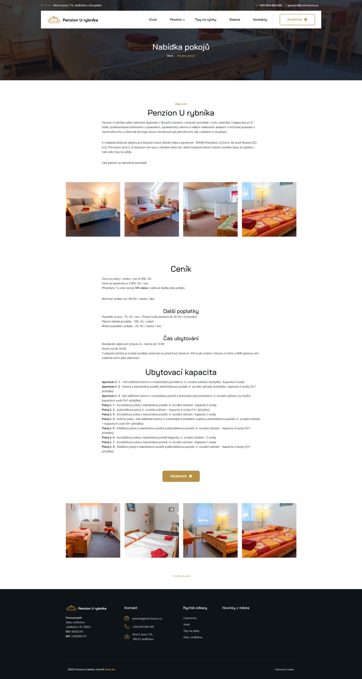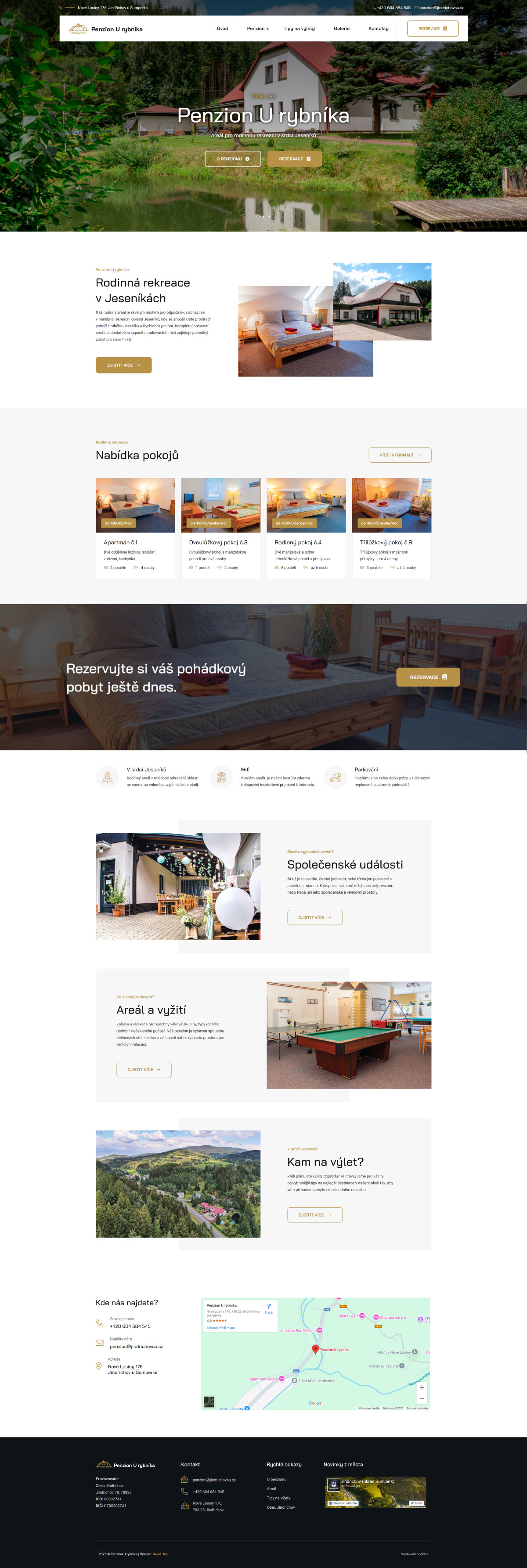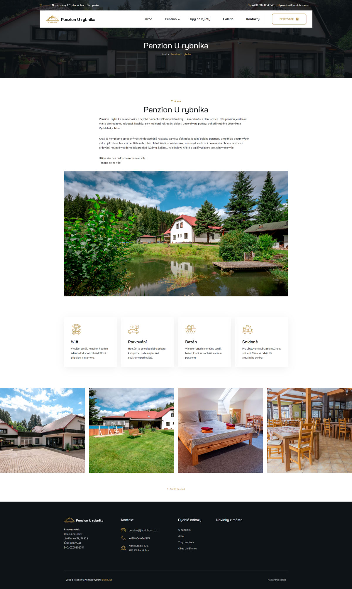 Informační a prezentační web pro Penzion U Rybníka v Nových Losinách. Cílem bylo vytvořit jednoduchý, přehledný a vizuálně klidný web, který hostům poskytne základní informace o ubytování, vybavení a okolí. Nechybí přehledná galerie, ceník, kontaktní údaje, nebo třeba seznam tipů na výlety po nejbližším okolí. Důraz jsem kladl na čistý design, snadnou orientaci a rychlý přístup k důležitým informacím.
