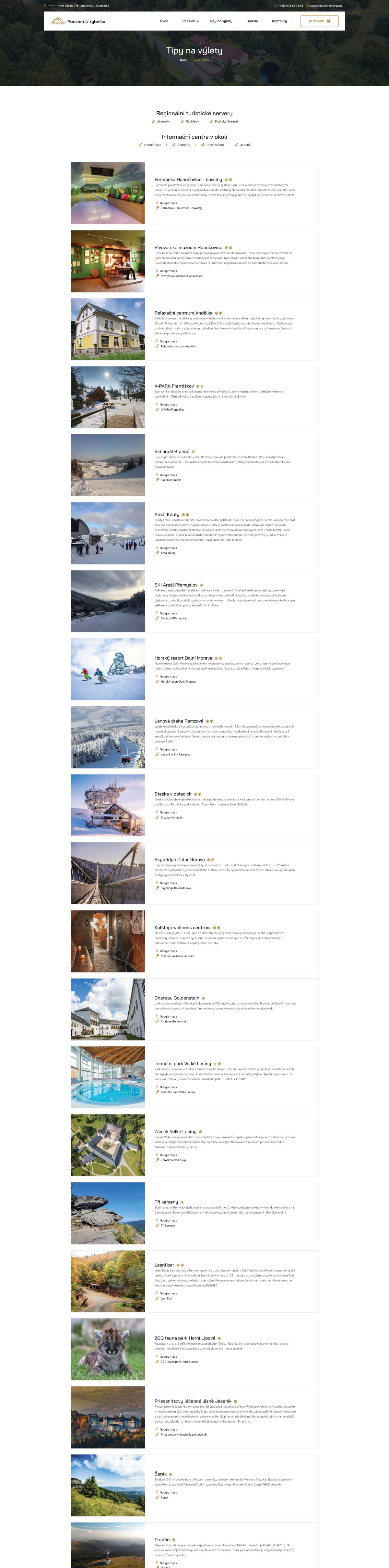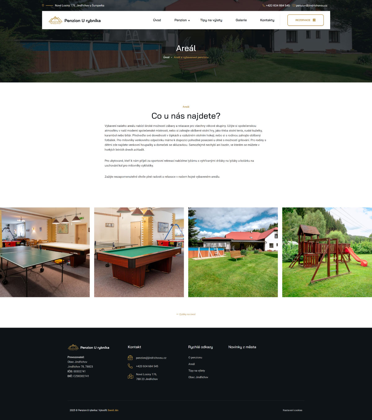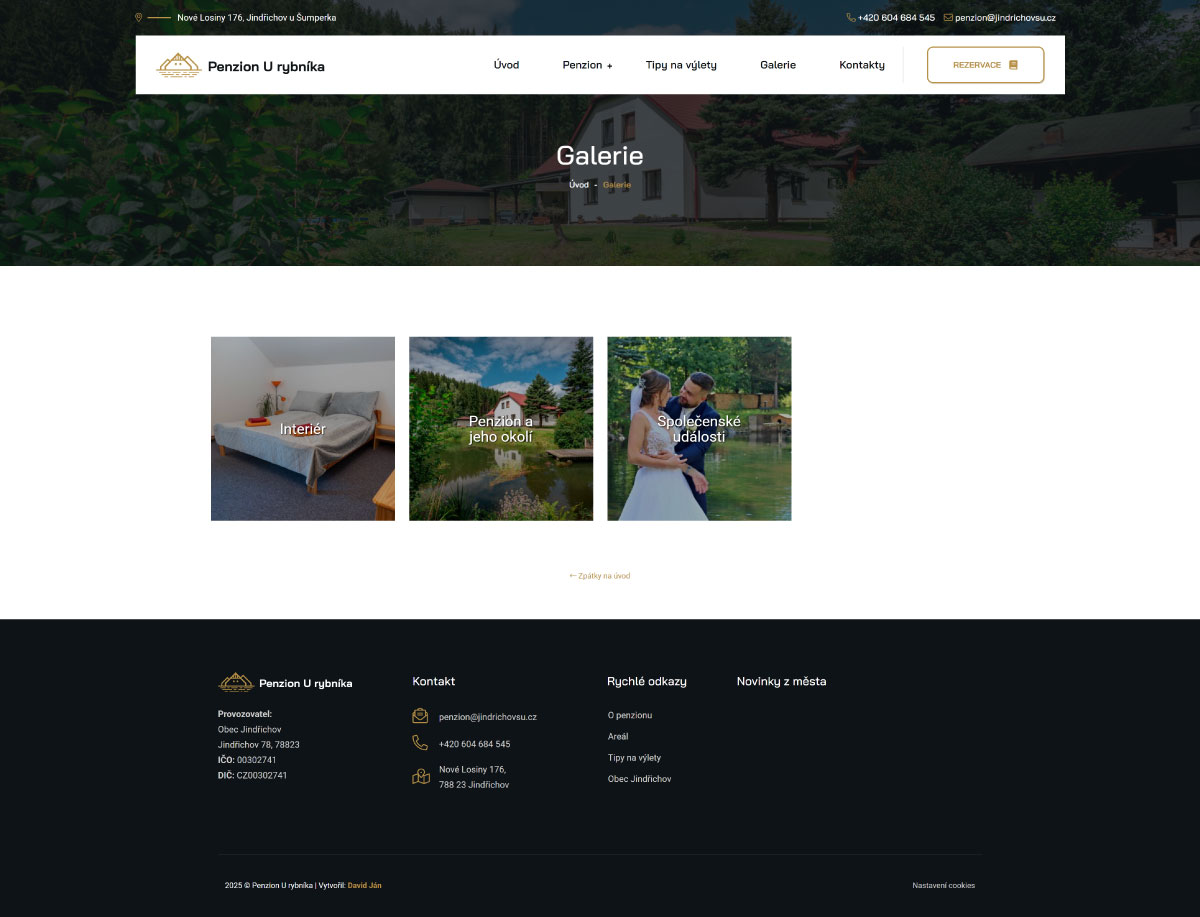 Informační a prezentační web pro Penzion U Rybníka v Nových Losinách. Cílem bylo vytvořit jednoduchý, přehledný a vizuálně klidný web, který hostům poskytne základní informace o ubytování, vybavení a okolí. Nechybí přehledná galerie, ceník, kontaktní údaje, nebo třeba seznam tipů na výlety po nejbližším okolí. Důraz jsem kladl na čistý design, snadnou orientaci a rychlý přístup k důležitým informacím.